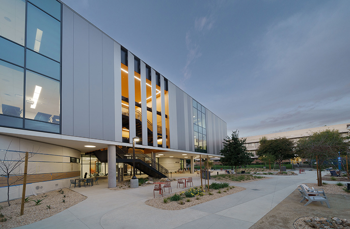 LZI provided design peer review and construction administration service for building enclosure for a three level, 40,000 GSF instructional building. The project was delivery was design-build. LZI completed design peer review of metal rain screen panel and cement plaster cladding over continuous insulation over AWB, sloped glazing, curtain and storefront fenestrations, PVC membrane low-slope roofing, and cold fluid-applied roofing. LZI supported the project during construction and provided submittal and shop drawing reviews, responses to RFIs, progress site visit reviews, and exterior façade testing program and observations.
