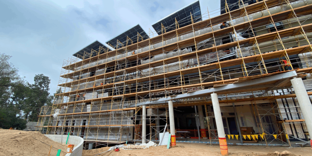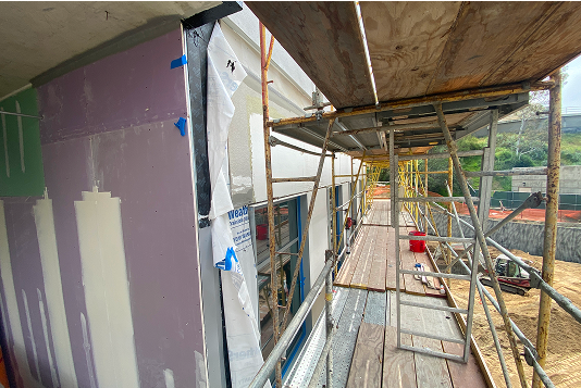 LZI provided building enclosure design peer review and construction administration for the four-level, 63,400 GSF state-of-the-art instructional building. The building comprises of shared resources, classrooms and educational spaces, student support spaces, academic offices, administration offices and building support. The project design integrating the area’s distinct topography. The project was delivered using a design-build approach under an accelerated and demanding construction schedule. LZI completed design peer review of the below grade and retaining wall waterproofing, exterior wall cladding (veneer brick over cement board over continuous insulation with integral AWB), a variety of fenestrations (windows in punched openings, window-wall, storefront, and curtain wall), sheet metal flashings, low-slope roofing with PVC membrane, and balcony deck waterproofing. LZI supported the project during construction and provided support of the performance mock-up, submittal and shop drawing reviews, responses to RFIs, progress site visit reviews, exterior facade testing program and observations. The structural design of the building presented complex movement joints in the exterior skin that required careful resolution for continuity and compatibility between exterior AWB, perimeter window sealant, roofing and associated accessory materials.